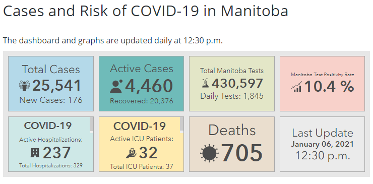 曼省疫情播报 曼省周三报告了10例COVID-19死亡和176例新病例。