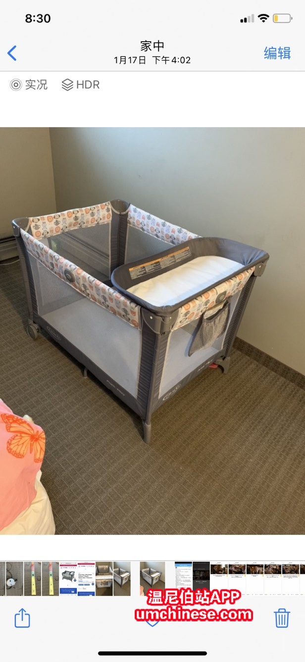 宝宝只是睡过几次 就不用了 ,要搬家 原价160刀 可调节高度 睡到0-4岁 现价50刀 联系方式 4313373665