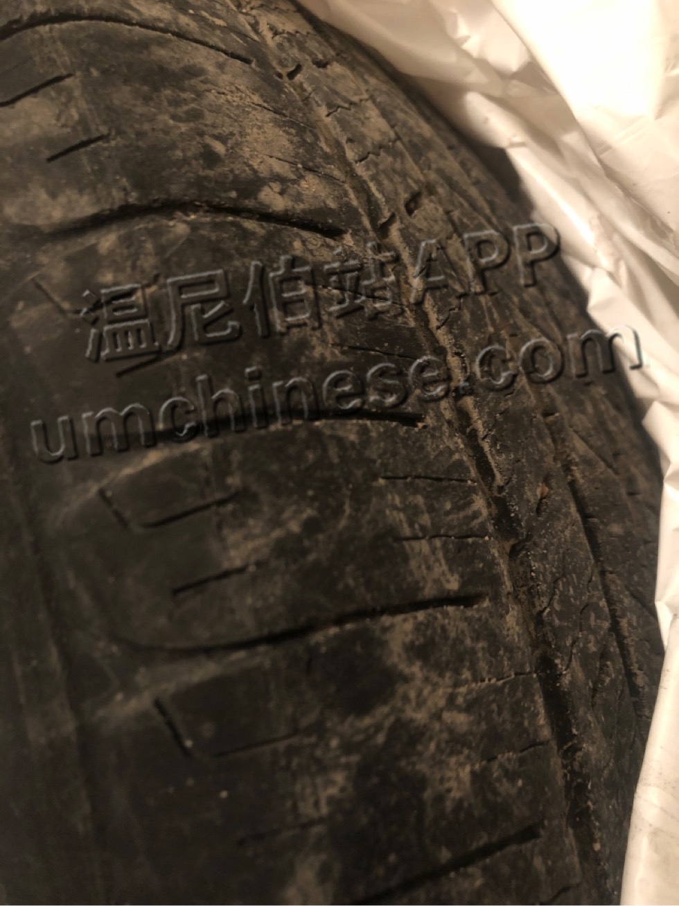 你这胎完全偏磨啊,你可以自己去google一下轮胎偏磨 |