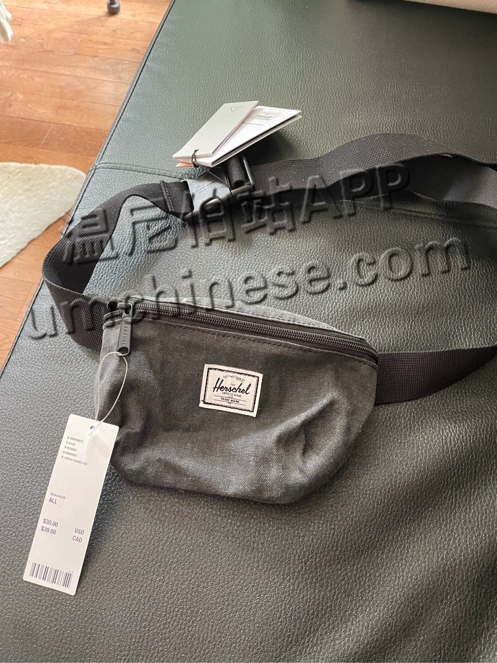 全新带标签Herschel小腰包,购于urban outfitters,布料是cotton,故意有点做旧的棉质,里面有写100%棉,很少见,这个牌子涤纶材质的多。黑色,全新,买来以后从来没用过,可以放下手机,腰包很方便,解放双手。很适 ...
