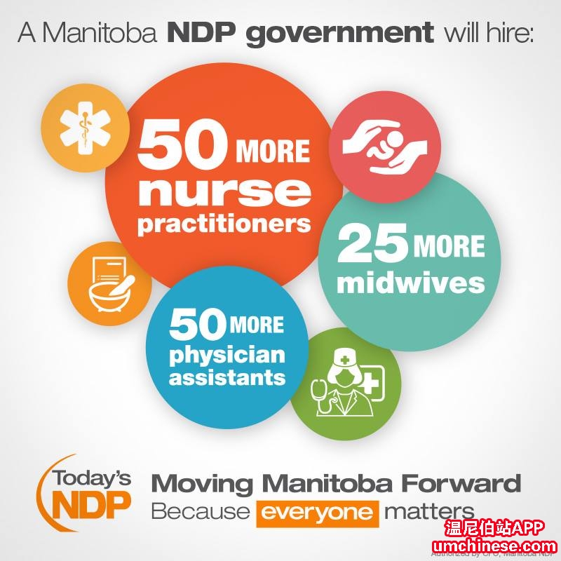 新民主党3月29日宣布将保护曼省医疗保健并保护一线医疗服务,确保医院和诊所雇佣更多的医生,护士和医疗专业人员。Pallister的保守党想要回到20年前的高价医疗制度。新民主党在保护全民医疗方面的成果有目共睹。自20 ...