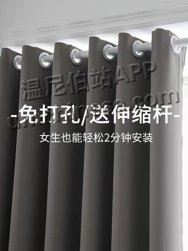 全新窗帘,免打孔(适用宽1.6-2.1m,帘高2.0m)对开,有弹簧杆 自取50bison