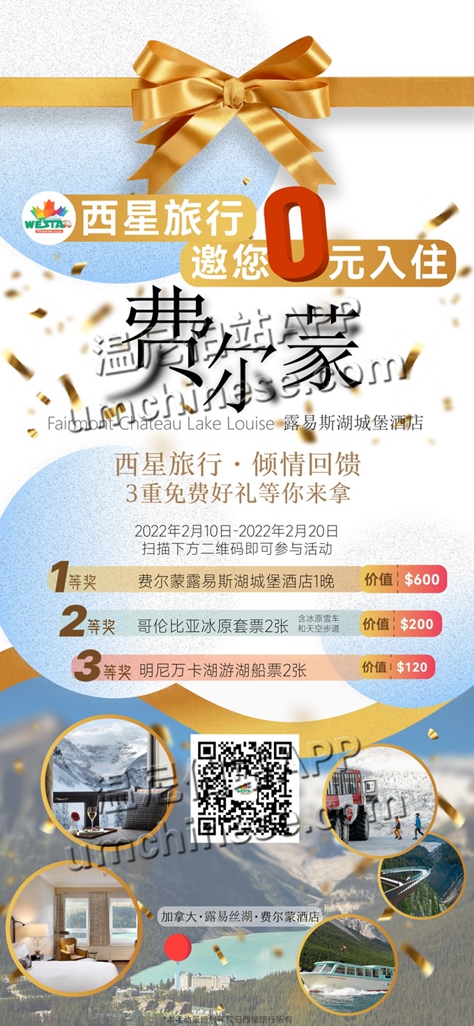 没错我就是来发福利的哈哈哈,不去白不去,万一中了呢,正好假期去卡加玩一趟顺便住住露易丝湖费尔蒙