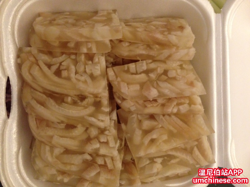 正宗东北肉皮冻 一盒$5刀 并惠送美味蒜清酱一份 凉拌土豆丝5刀/份 微信:SHJ-YM 保质保量,健康实惠,美容养颜,美味可口,敬待惠顾! 小编小介:猪皮中含有大量的胶原蛋白质,它在烹调过程中可转化 ...