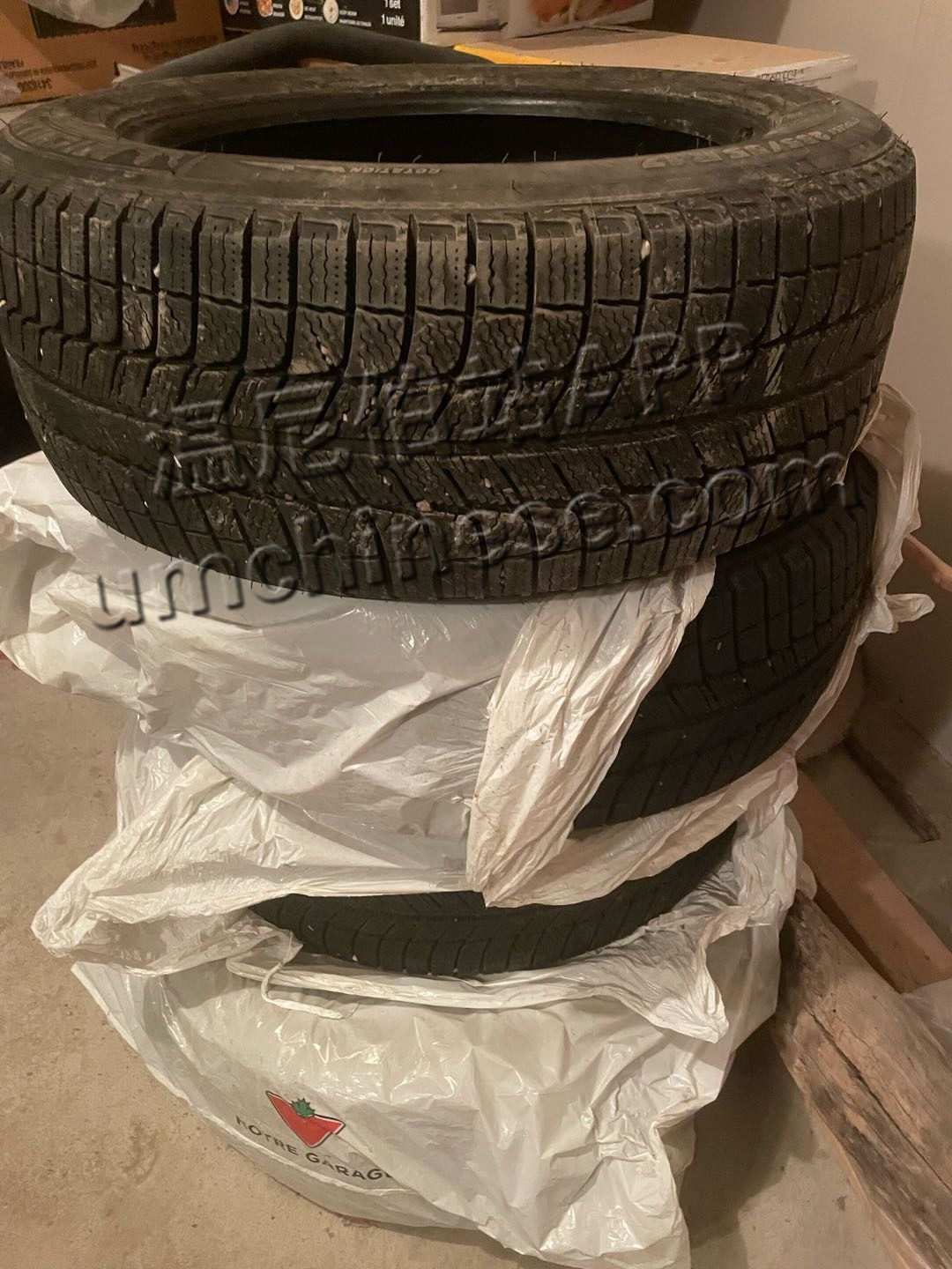 出一套9成新Michelin雪胎,型号:235/55R17 只使用了一个冬天,轮胎状态良好,胎纹很深,400出,价格可小刀 南区自区 短信联系:204-230-7859