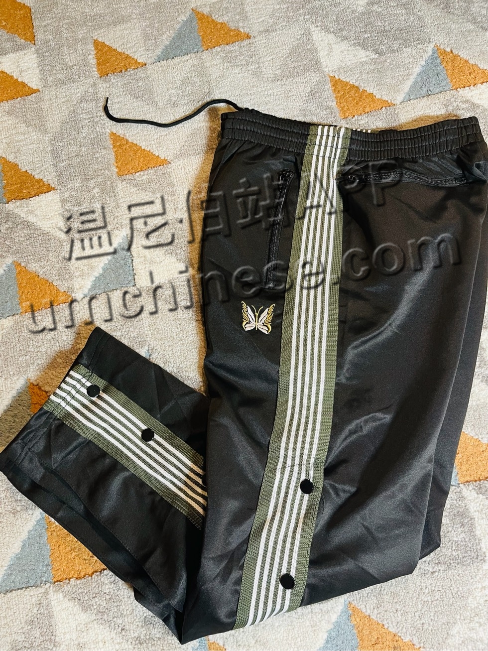 老夫子 NEEDLES 侧边排扣蝴蝶刺绣织带复古休闲春夏宽松长裤 $15短信4319999869 南区自取