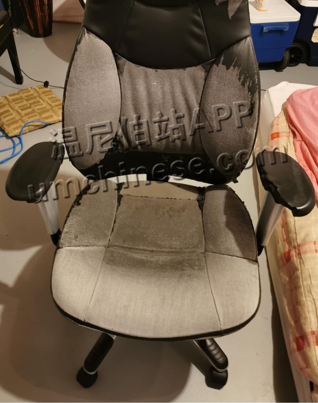 除了表面磨损外,各种功能保持着良好的状态。如果你想让它看起来更好一些,可以考虑使用一个办公椅套,你可以在亚马逊上找到:https://www.amazon.ca/Office-Chair-Cover/s?k=Office+Chair+Cover