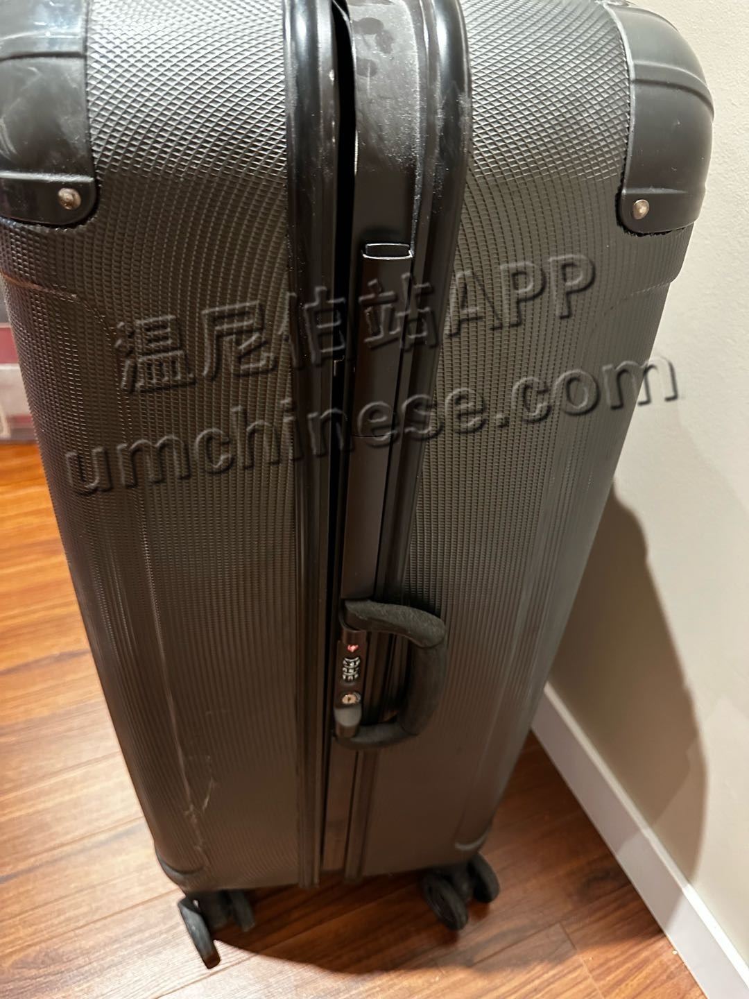 有一边的锁坏了 合不起来,可以用行李带绑起来一样能用 短信联系 2042941876