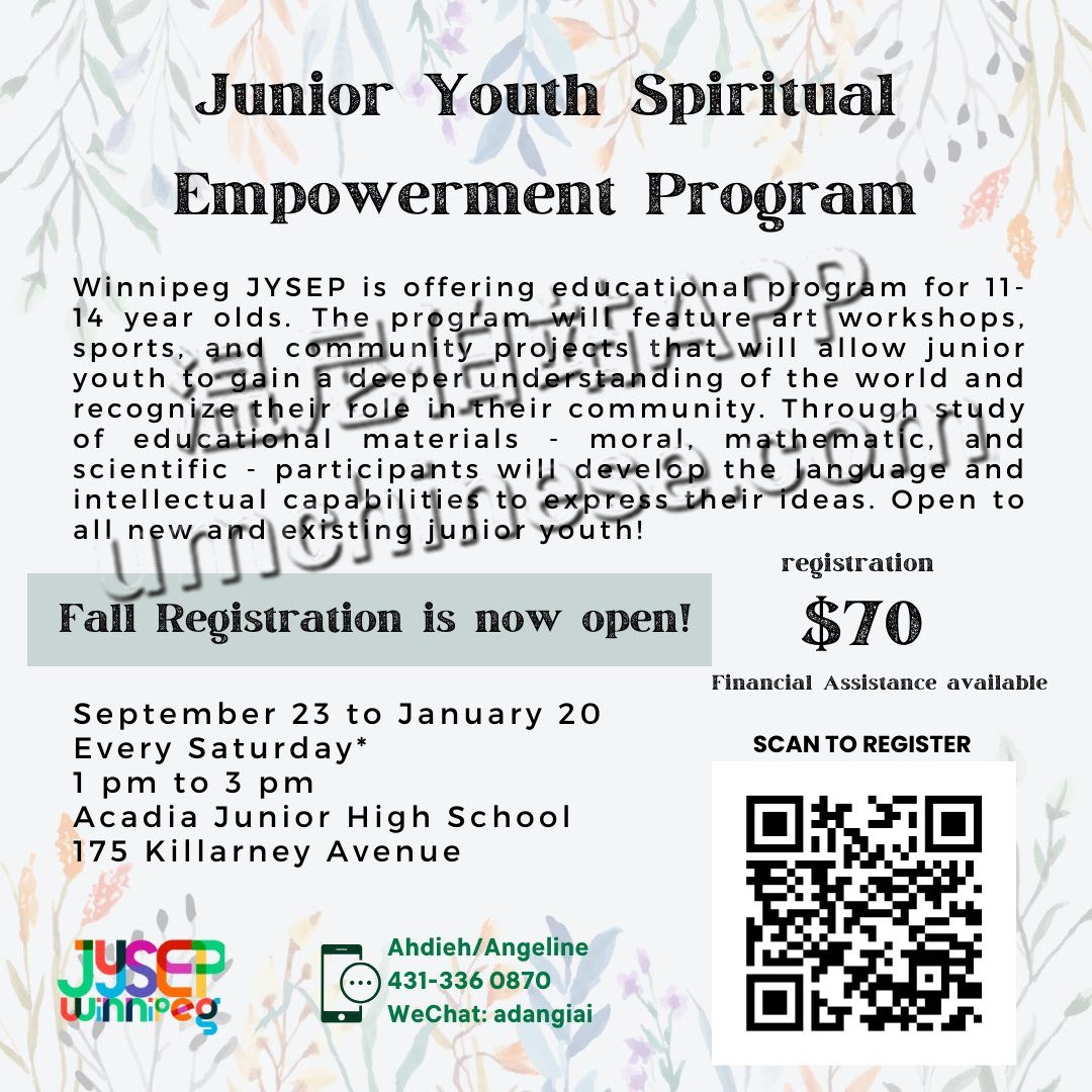 九月二十三日(周六)开始JYSEP(青少年灵性赋能项目)的新学期。时间是每周六一点到三点。也有家长的English Corner(英语角),会和孩子的活动同时进行!