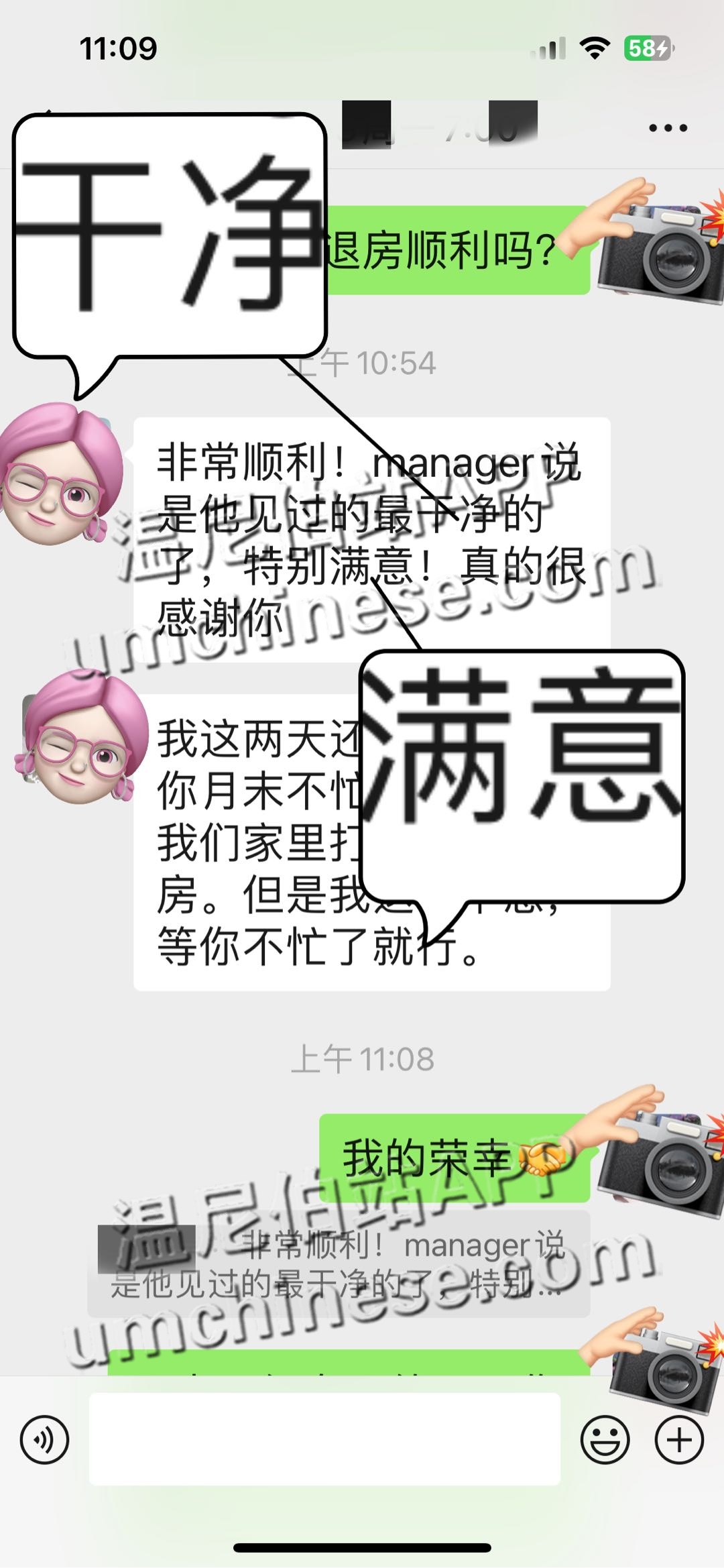收到客户的反馈,客户说退房非常顺利!manager特别满意!客户满意才是我们最大的动力,感谢信任与支持!