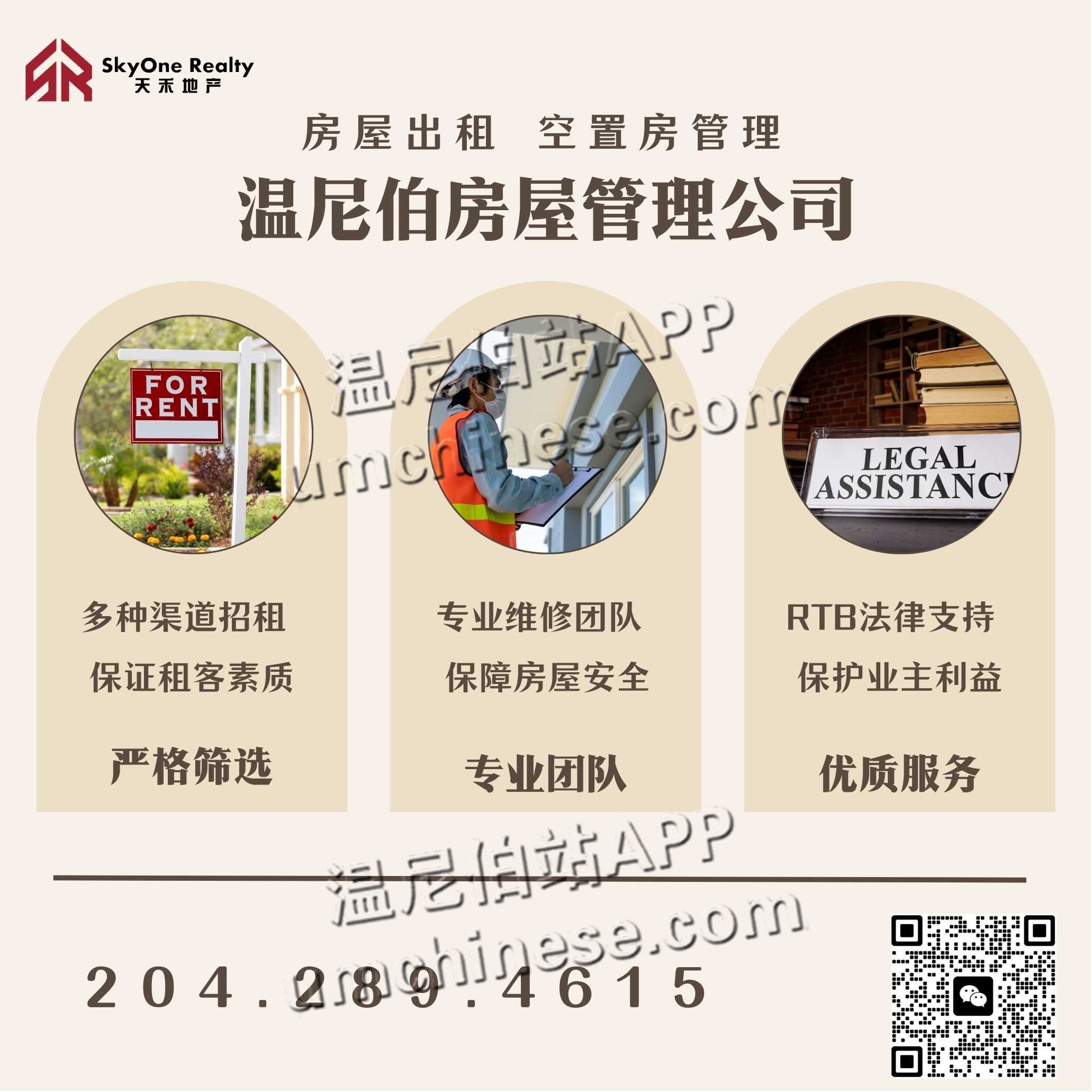 天禾地产物业公司提供专业房屋管理,从源头处最大化为业主解决后顾之忧!严格的租客筛查,专业的租客管理规章,定期房屋检查,全程100%法律维护业主利益。