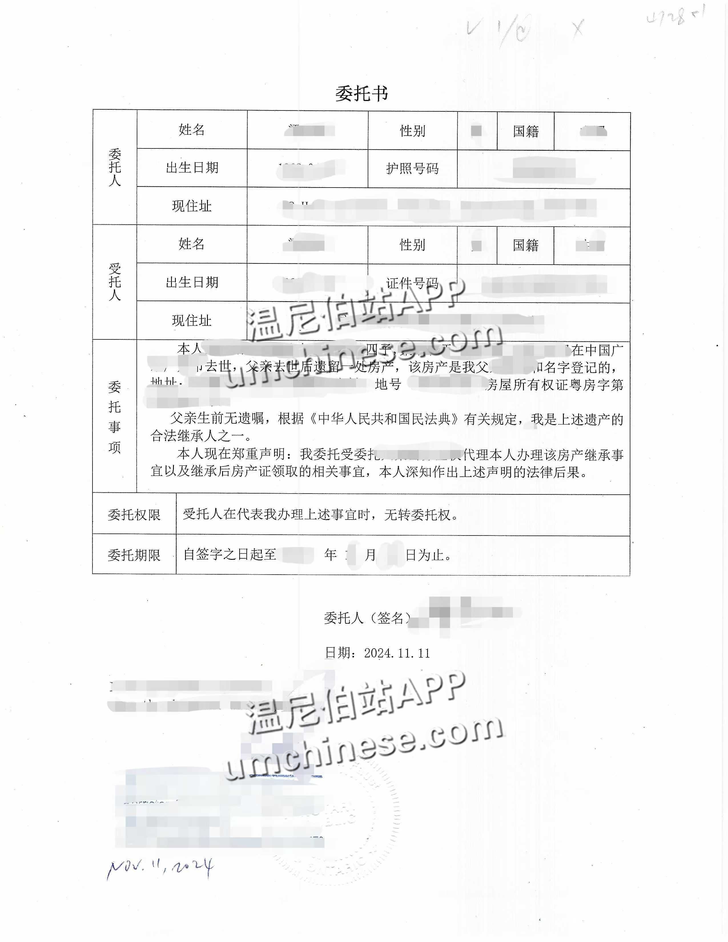 最近完成一批海牙认证,其中几个是有关国内遗产继承的公证书海牙认证。这里发布两个文件,一个是继承手续委托书海牙认证,一个是放弃继承声明书海牙认证。两种文件代表了两种常用的选项,要么继承要么放弃,决定继承 ...