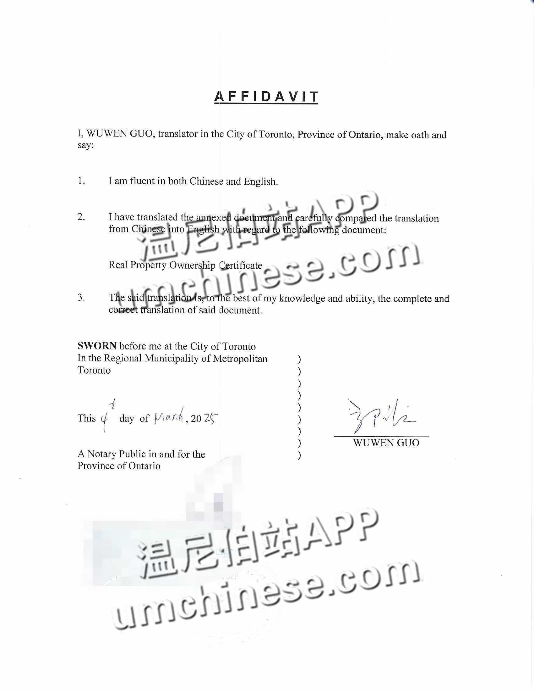 成功案例:中国房产证翻译及公证用于加拿大报税及移民局申请 案例背景: 王先生在中国拥有房产,现已移民加拿大。在加拿大报税及向移民局提交申请时,政府要求他提供中国房产证(房本)的英文翻译件,以核实其海外 ...