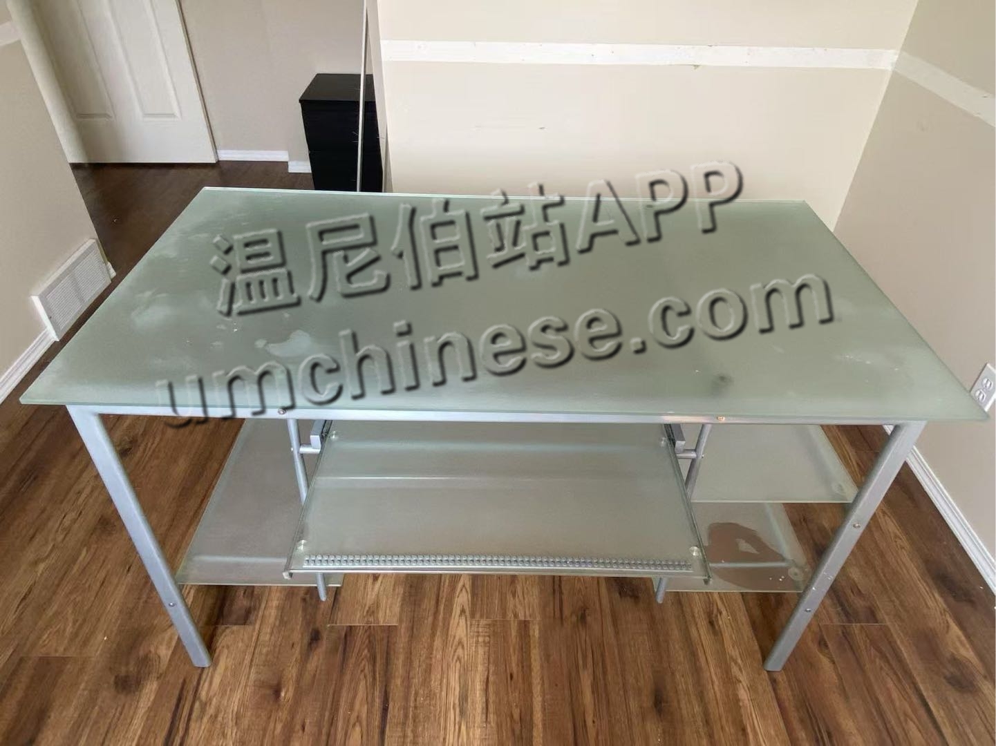 50刀,高档玻璃电脑桌,宽130cm,进深70cm,高79cm,左下角有机箱专用摆放位,中间有抽拉式键盘鼠标抽屉,南区Costco附近自取,联系电话:4315575855