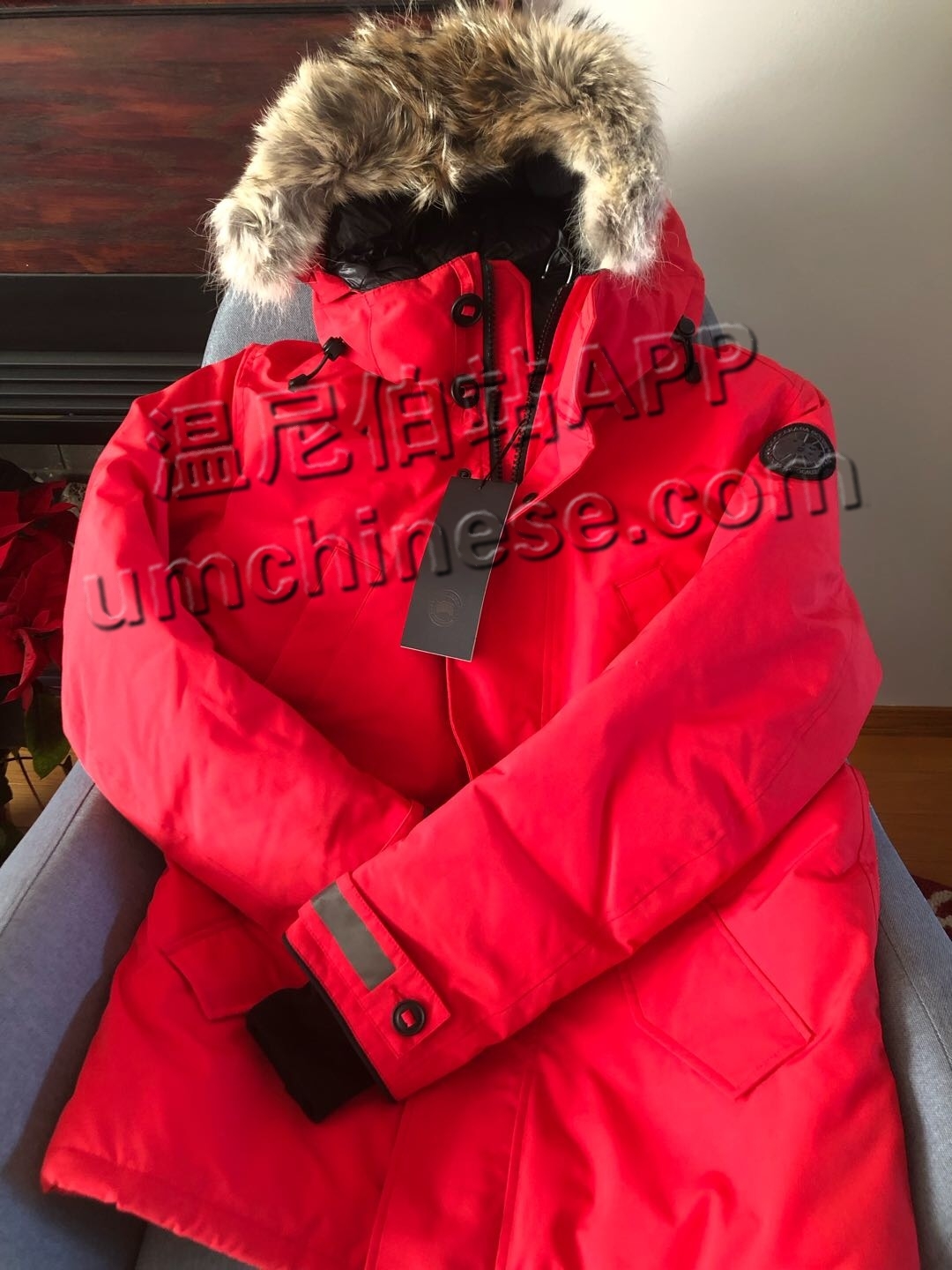 全新男款红色L号,EDGEWOOD PARKA 黑标毛领,600刀。微信hepingjie501