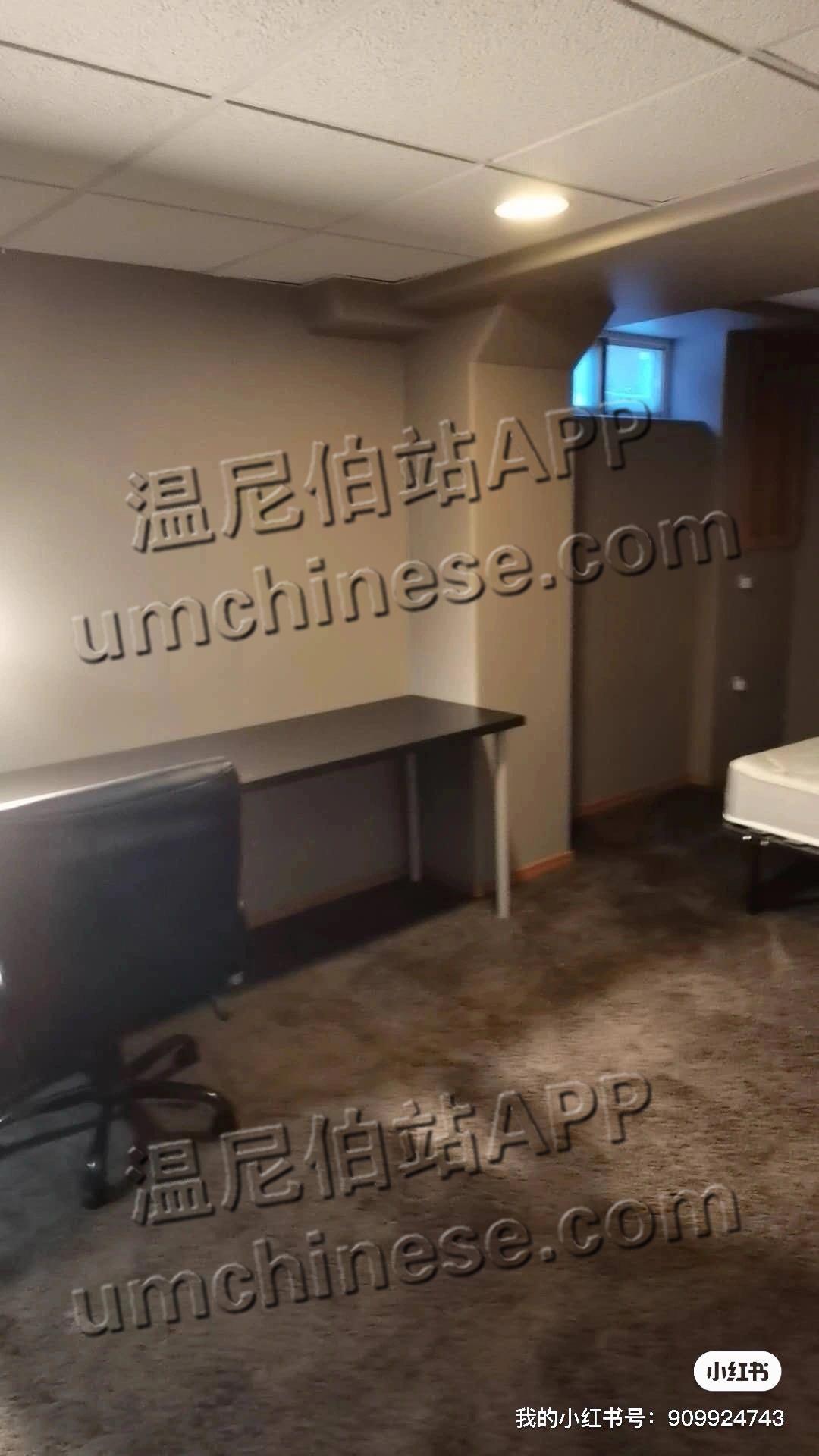 现有BairdMore School 小学附近半地下室大单人房间出租 内有床桌椅 包水网电暖 现房即住 欢迎不吸烟 不养宠物的朋友 wx: yuming-12345