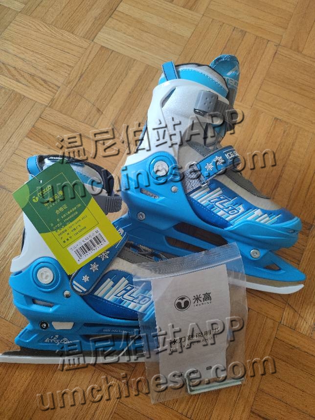 米高滑冰鞋,全新,33-36码可调节。40刀出。电话204-8692617