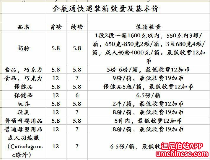 金航通快递承接UPS, DHL发往中国、美国及世界其它国家的快递件,文件、货物均接受。价格优惠。欢迎垂询。如需报价请需要知道箱子重量和长宽高。发中国普通快递费请参考下图,谢谢。 联系电话:204 8993858